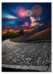In the quiet of the evening, vibrant bursts of color bloom silently on the horizon