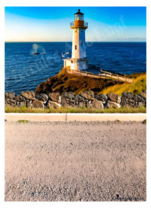The car rests at the edge beside the lighthouse, both waiting in quiet companionship for evening to drape the sea in spectacular views  and light.