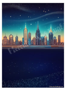 The sleek vertical lines of the city skyline rise in silent grandeur, meeting the horizontal elegance of the car below in a harmonious dance of architecture and motion.